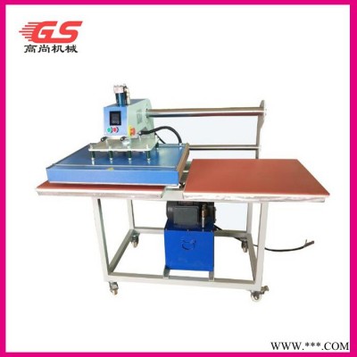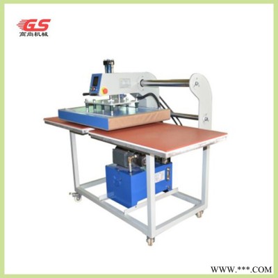 动双工位上下发热烫画机可将升华类、溶剂类油墨的图案与文字经热转印在棉、麻、化纤、尼龙等织物及陶瓷制品上,还可进行植毛烫画和发泡印花工艺等的热处理,及服装的低温低压衬与面料的粘合,如服装、鞋帽等粘合之用,也可用于生产小批量的手帕