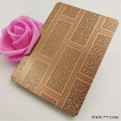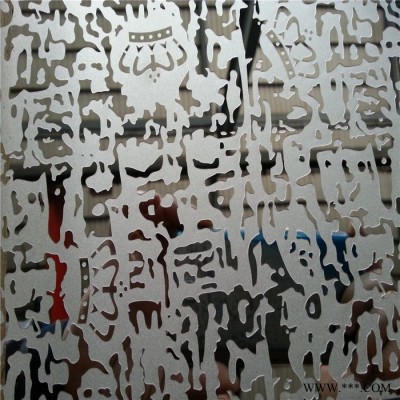 产品简介: 不锈钢蚀刻板也叫不锈钢印花板、不锈钢腐蚀板、不锈钢花纹板、不锈钢蚀花板等,蚀刻工艺是通过化学的方法,在不锈钢板表面腐蚀出多种花纹图案,蚀刻加工过的板材,还可以进行局部的多种复杂工艺处理,如局部和纹、局部拉丝、局部喷砂等,蚀刻深度在0.5C---50C之间,这里所说的1C等于0.01mm,蚀刻的深度不一样价格**会不一样,而且不同应用范围蚀刻深度也会不同