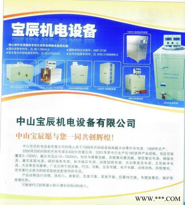 中山宝辰牌高频脉冲开关电源产品简介