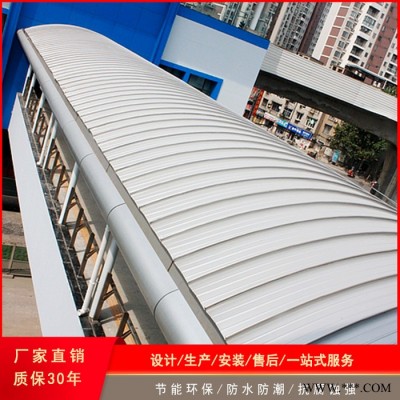 直立锁边铝镁锰合金金属屋面系统的核心构成,是基于直立锁边咬合设计的特殊板形的金属板块,在屋面上看不见任何穿孔,因为支承的方式是隐藏在面板之下的。屋面板块的连接方式是采用其特有的铝合金固定支座,板块与板块的直立锁边咬合形成密合的连接,而咬合边与支座形成的连接方式可解决因热胀冷缩所产生的板块应力,该优势反映在可制作纵向超长尺寸的板块而不因应力影响变形。同时本屋面系统完整齐全的附件供应可满足各种建筑形式的要求。